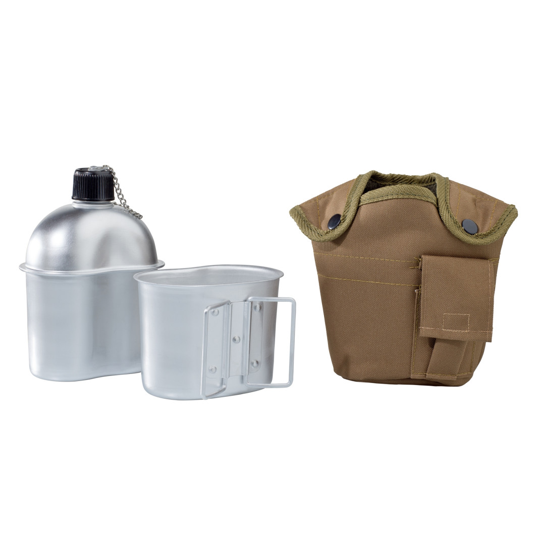 Комплект алуминиева манерка с канче и термокалъф цвят койот - - -