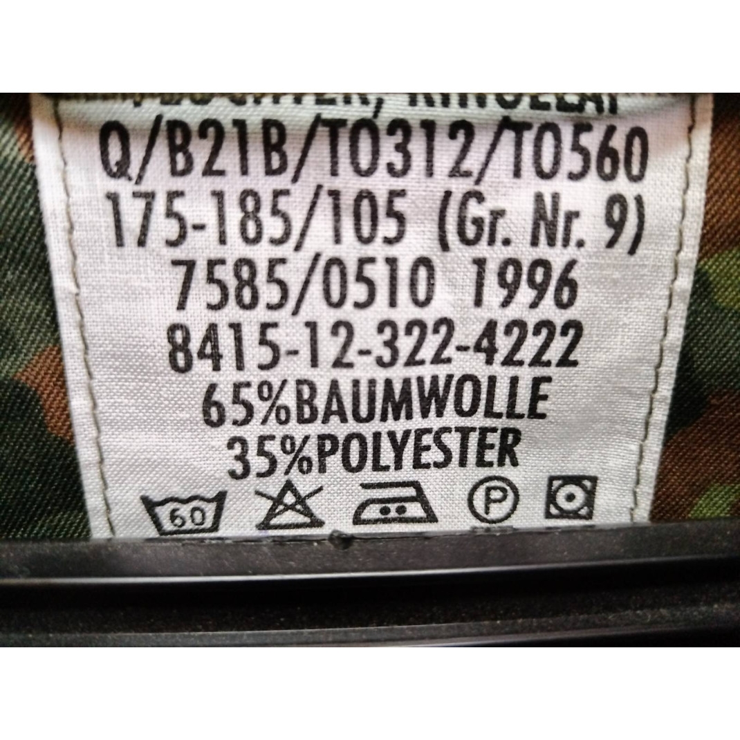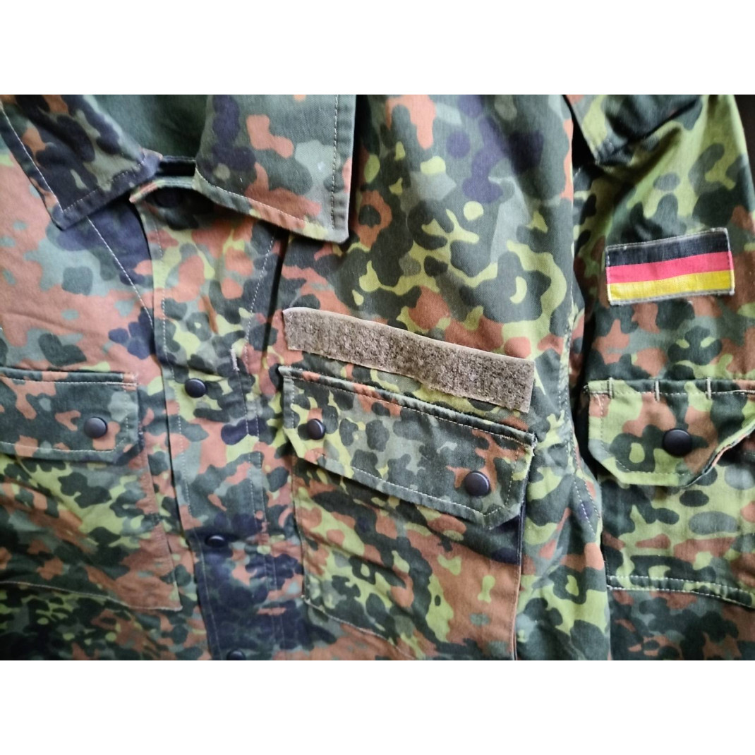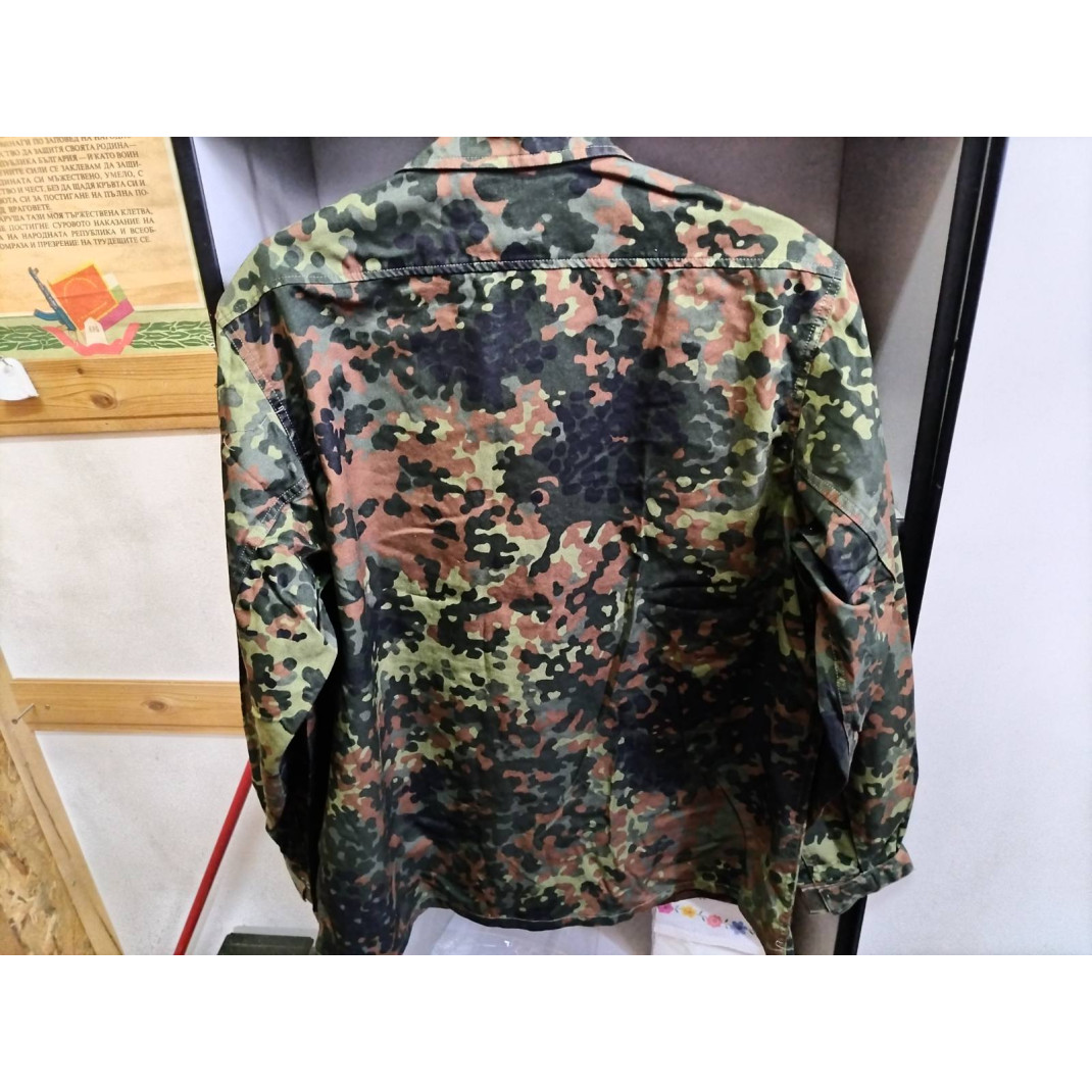 Оригинална немска военна риза , '' FLECKTARN '' камуфлаж , стари военни резерви , материал 65% памук , 35% полиестер , закопчаване с цип и метални капси , пагони с велкро закопчаване , велкро лента на гърдите . Изключително здрава изработка.